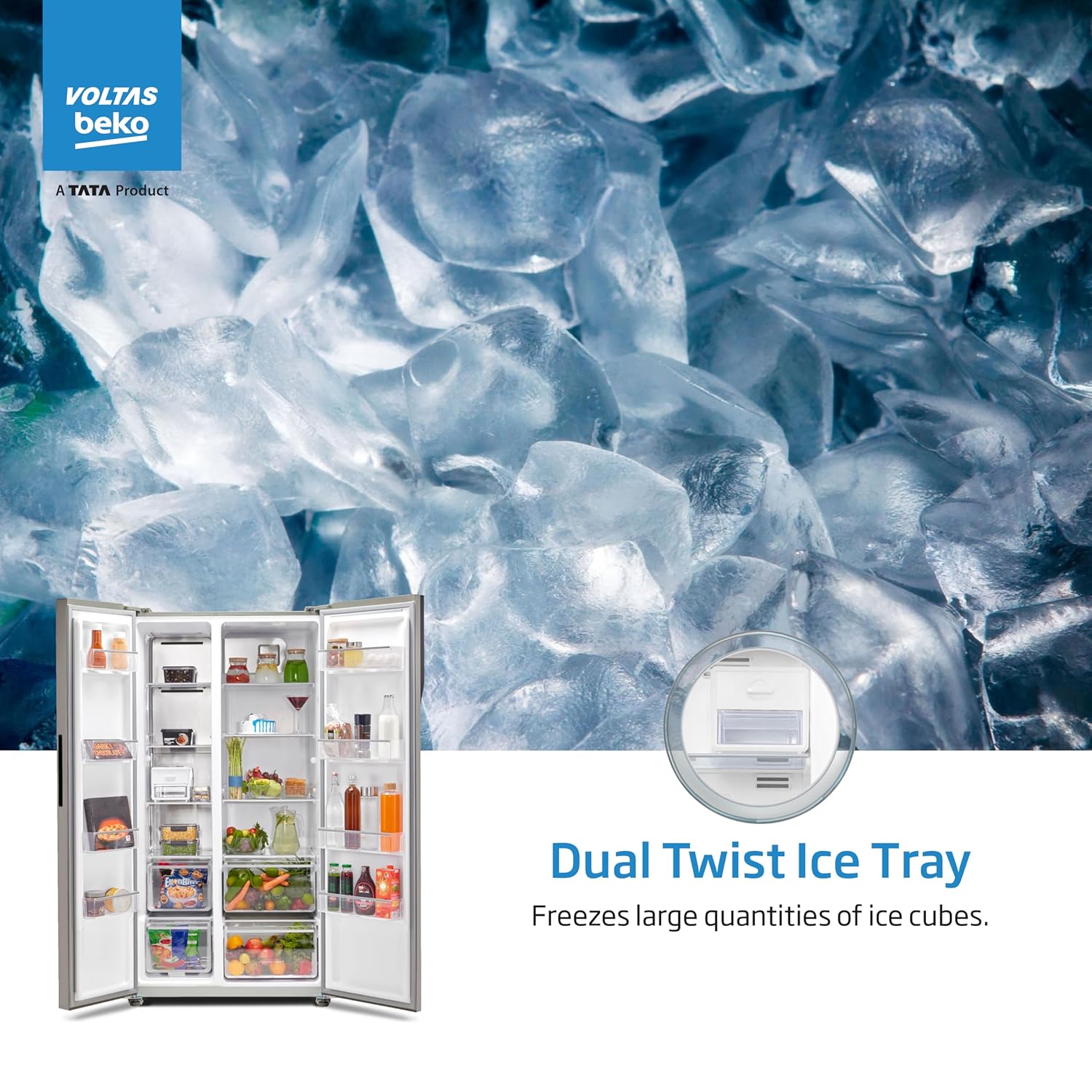 Voltas Beko, A Tata Product 563 L Side by Side Frost Free Refrigerator with ProSmart Inverter Compressor (RSB585/FPV300RXID, INOX steel, Active Fresh Blue Light)
