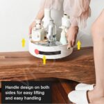 The rotating tray itself is made of sturdy plastic and is easily cleaned with a cloth when it is covered with dust. If it is dirty with greasy or colored sauce, you can directly wash it with water. It takes only a few minutes to dry it up or quickly dry it with a dry cloth.