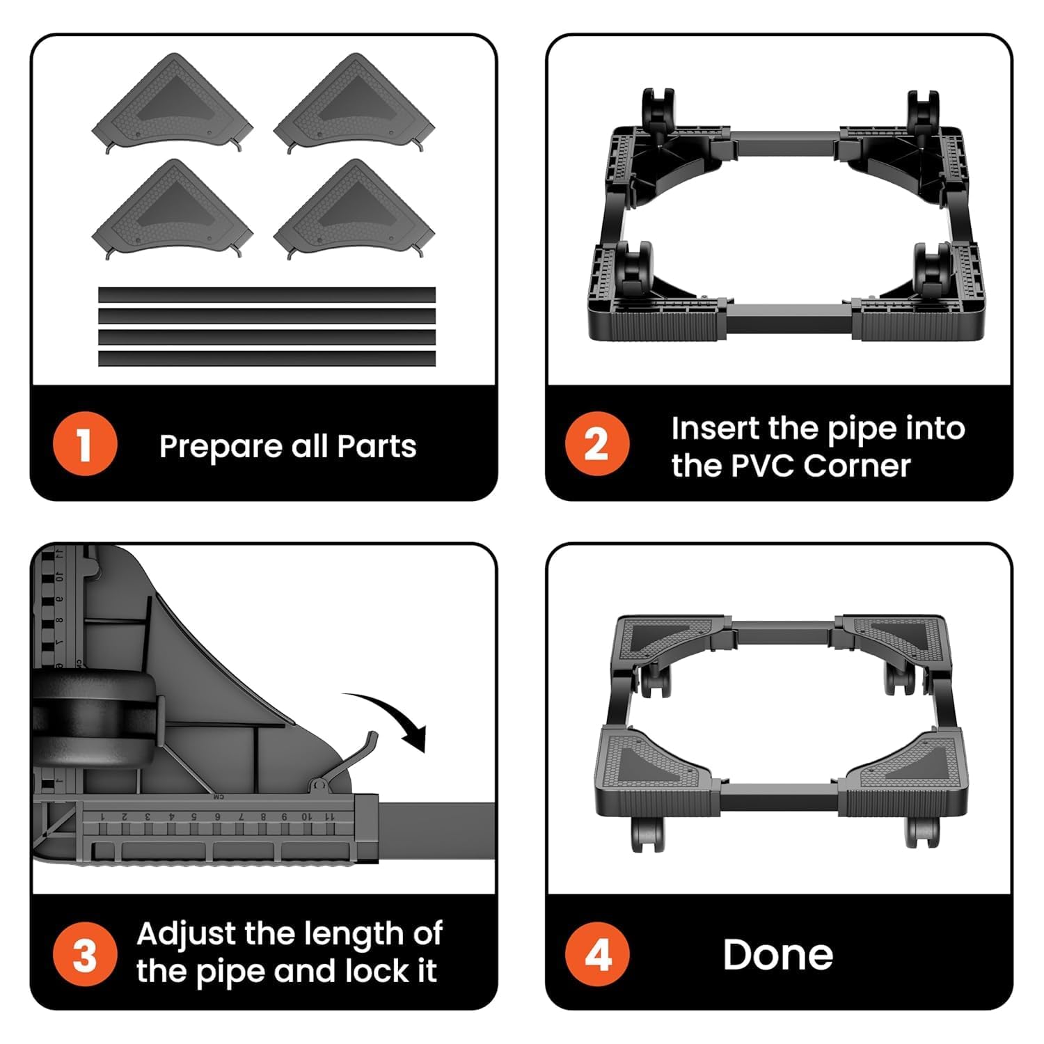 𝐄𝐚𝐬𝐲 𝟐-𝐒𝐭𝐞𝐩 𝐈𝐧𝐬𝐭𝐚𝐥𝐥𝐚𝐭𝐢𝐨𝐧: Our washing machine stand is specifically designed for quick and hassle-free usage, unlike other complicated available washing machine stand. 1) Pull the stand out of the box. 2) Adjust the size as per your appliance. DONE!!