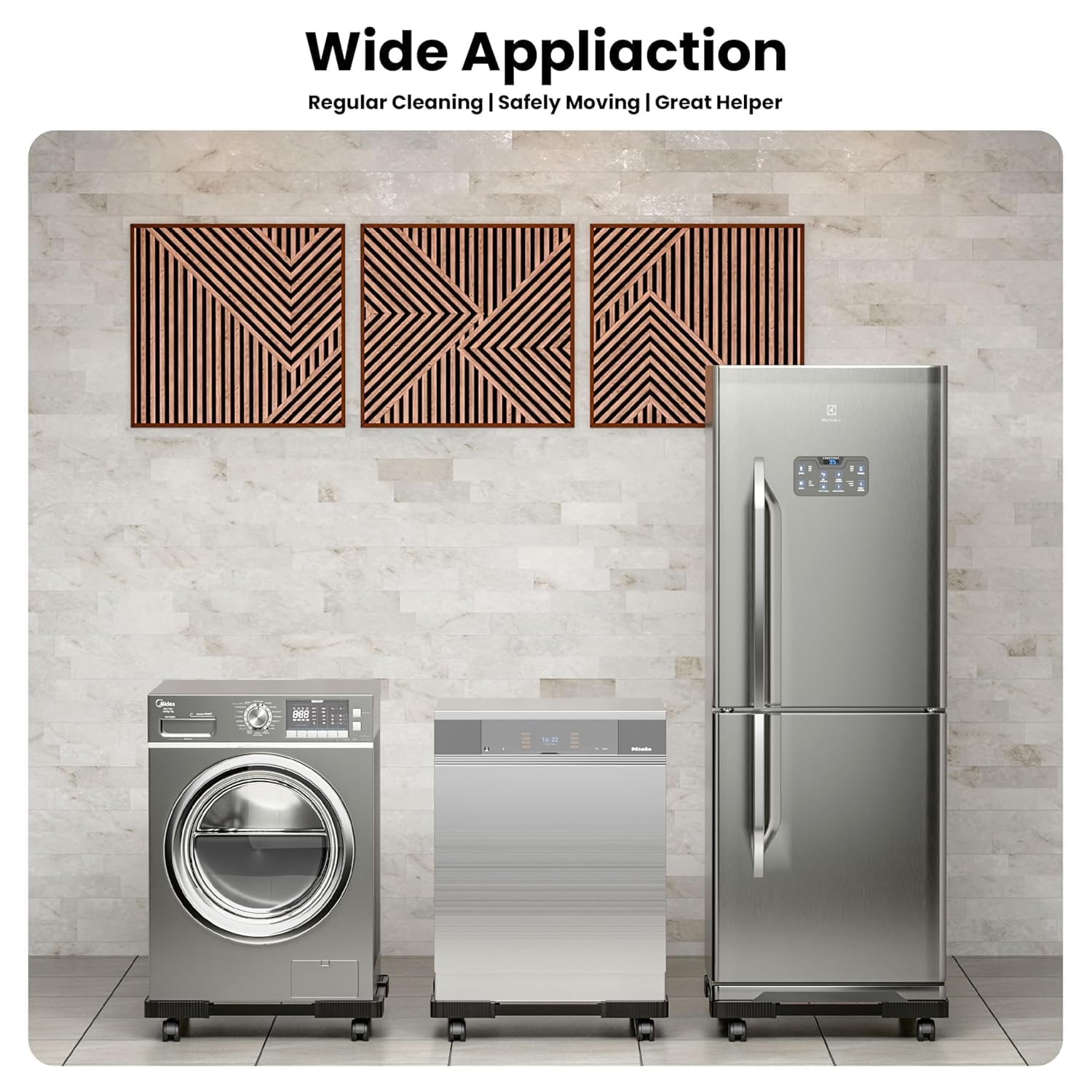 𝟑𝟔𝟎-𝐃𝐞𝐠𝐫𝐞𝐞 𝐖𝐡𝐞𝐞𝐥𝐬: The stand is equipped with 360-degree 4 x swivel wheels. The heavy-duty casters are made of strong and durable high-quality polyamide. Place the washing fridge machine stand under the refrigerators, washing machines, or other household appliances then move simply.