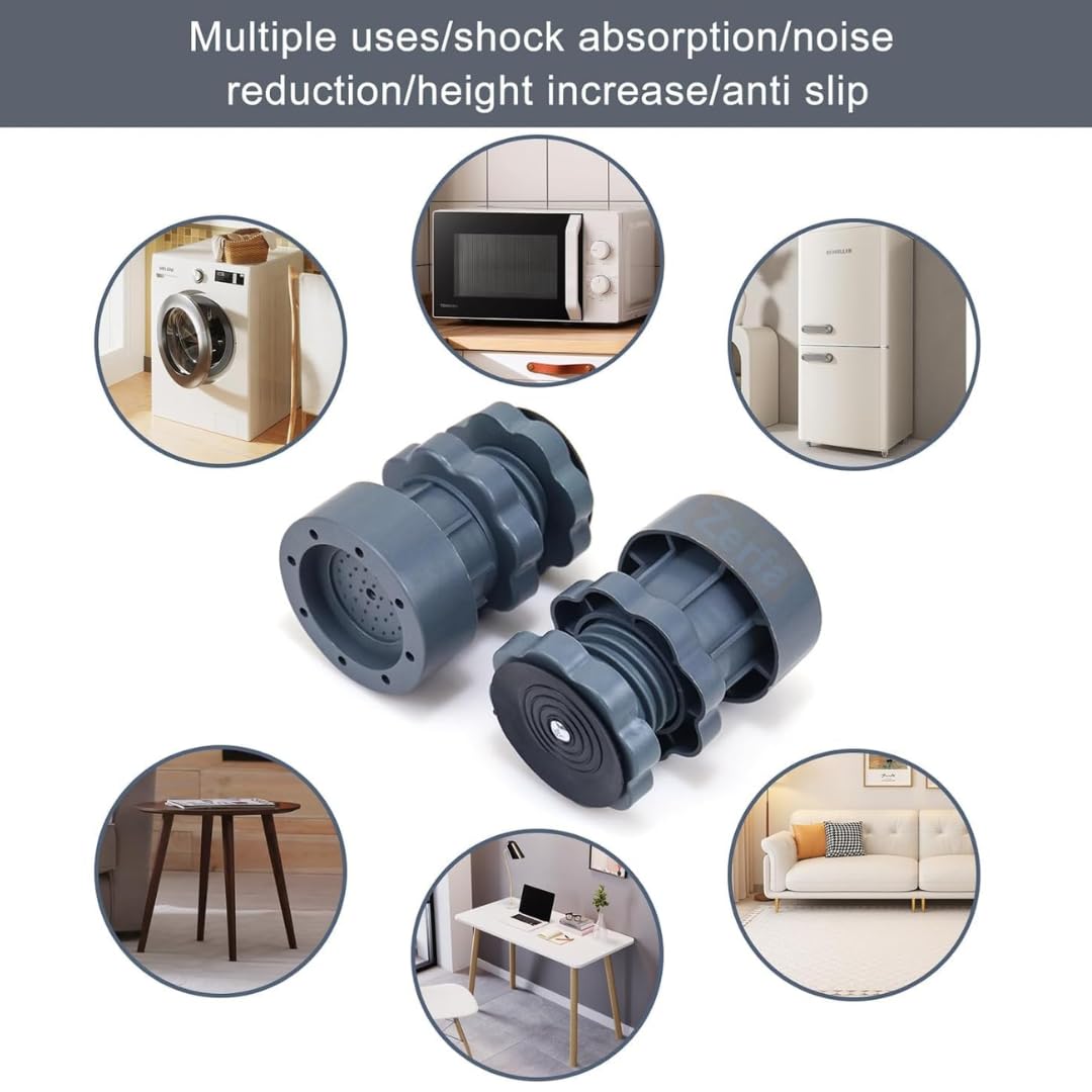 【Adjustable Design】The anti-vibration washing machine support features a perfectly adjustable design, allowing you to increase the height as needed. These vibration pads for washers and dryers help prevent moisture buildup and make cleaning easier.