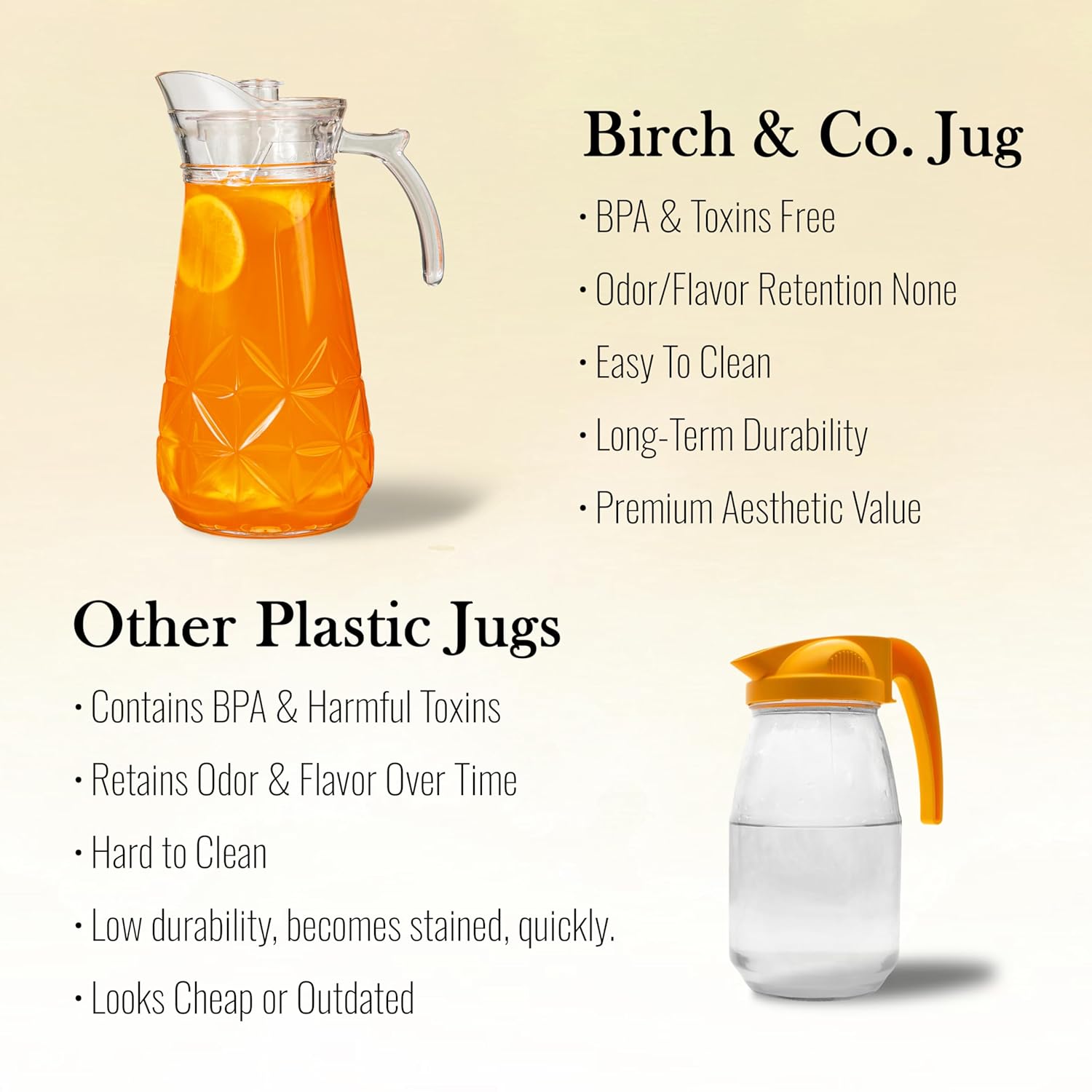 PREMIUM QUALITY GLASS – Glass jug for water is Expertly crafted from high-grade, lead-free glass that ensures exceptional clarity and strength. Enjoy a luxurious feel and a safe, eco-friendly choice for serving all your favorite beverages.