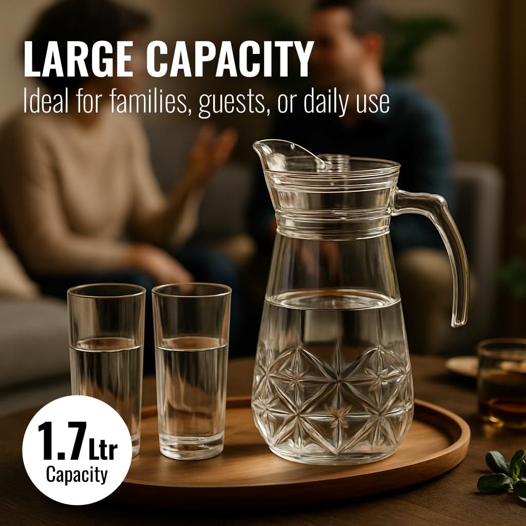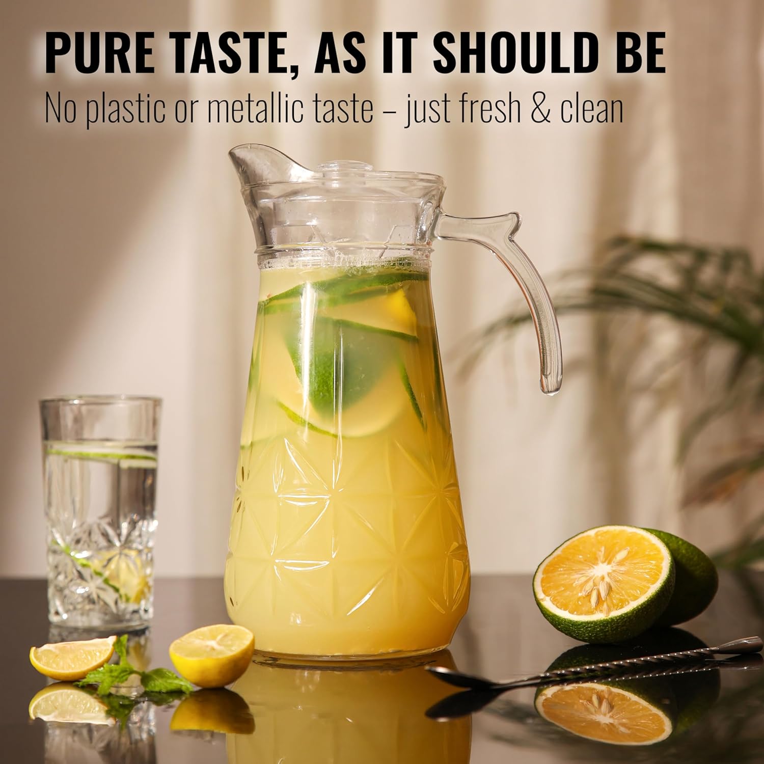 Water Jug – Detox Glass Jugs with Lid for Dining Table – Elegant 1700 ml Transparent Pitcher for Juice, Iced Tea, Infused Water, Milk, Lemonade, Hot & Cold Beverages, WATERJUGS_CRISTELLO_1700ML