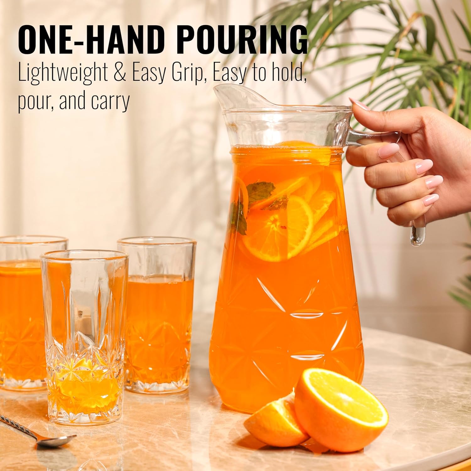 ERGONOMIC EASY-GRIP HANDLE – This water jugs for dining table is thoughtfully designed handle ensures a firm, comfortable grip, allowing you to pour effortlessly without spills. Makes serving easy and safe, even when the jug is completely full.