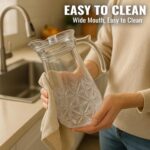 ELEGANT TRANSPARENT DESIGN – Detox water bottle glass Jug is Crystal-clear glass showcases vibrant colors and fresh ingredients, adding sophistication to any dining table. Beautifully complements modern and traditional kitchen or dining decor.