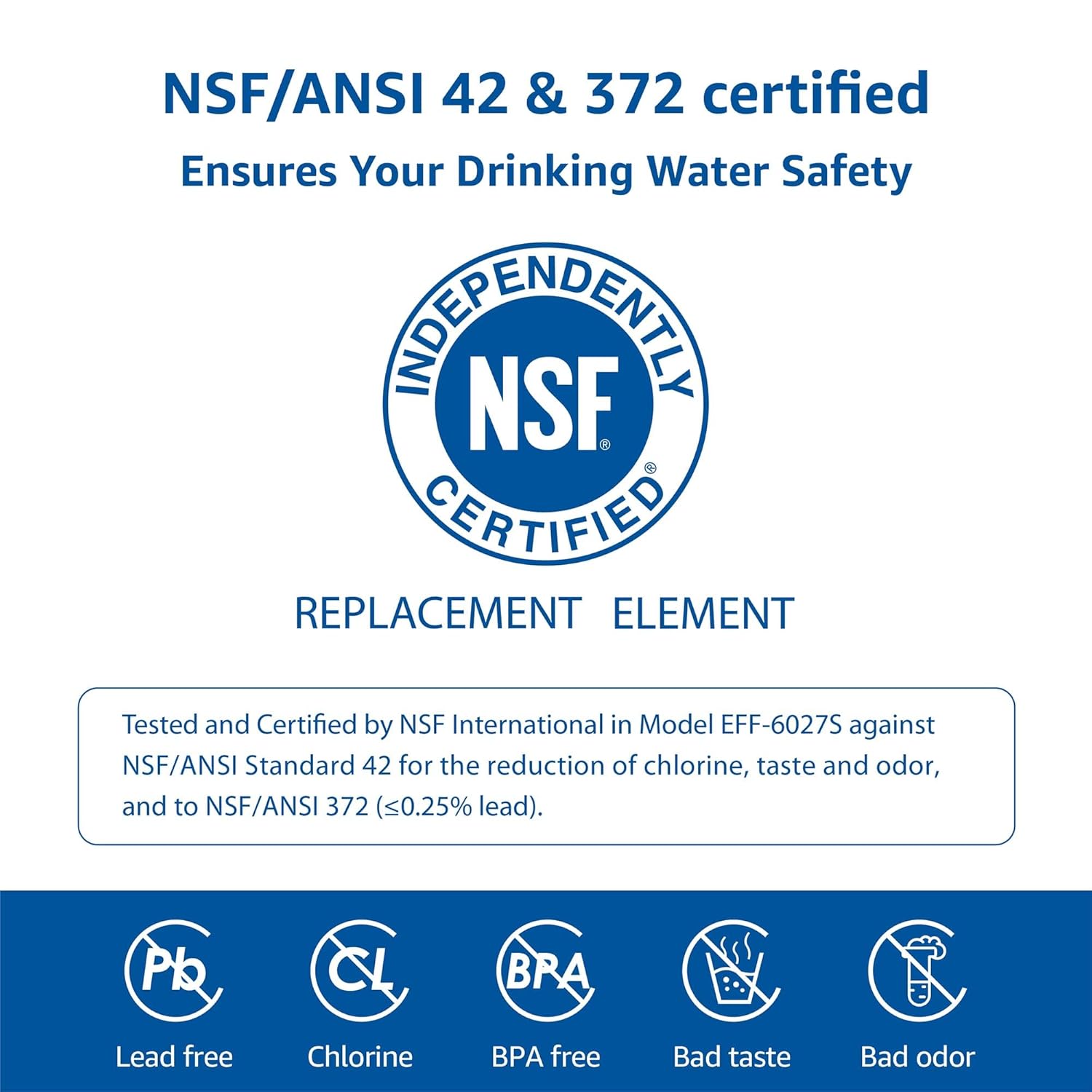 Monthly install stickers: Waterspecialist filters come with date labels that remind you to change it on time. Besides, the filter life is 6 months or 300 gallons (varies based on the water condition).