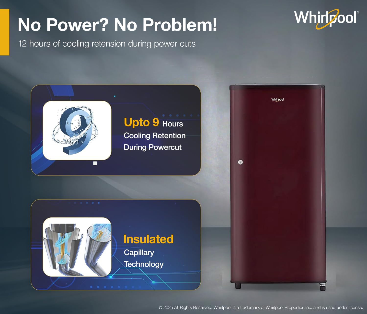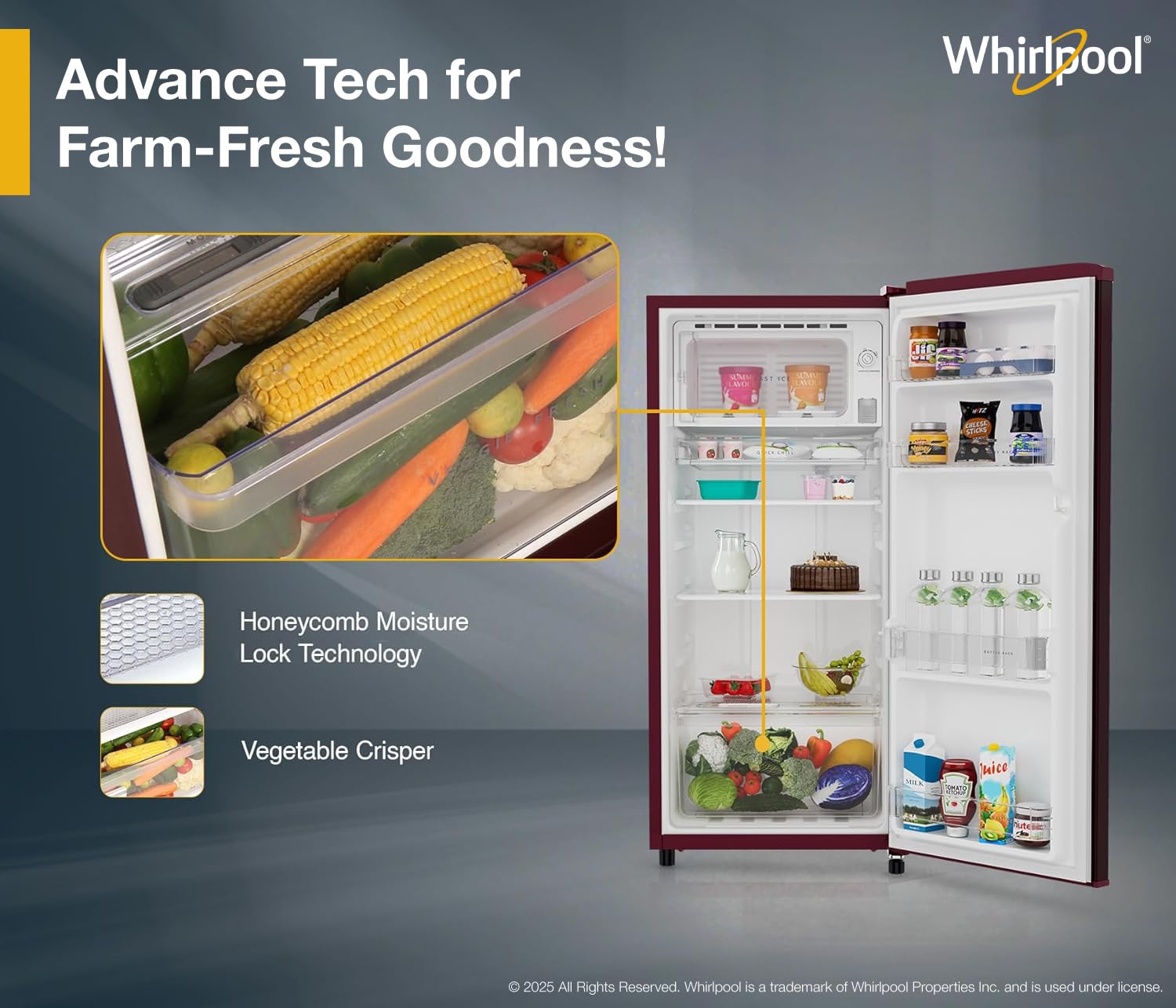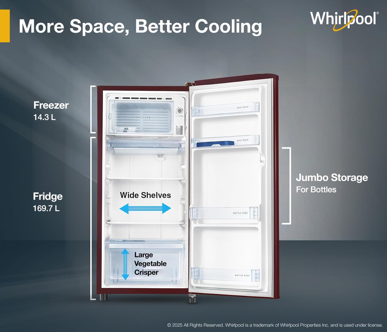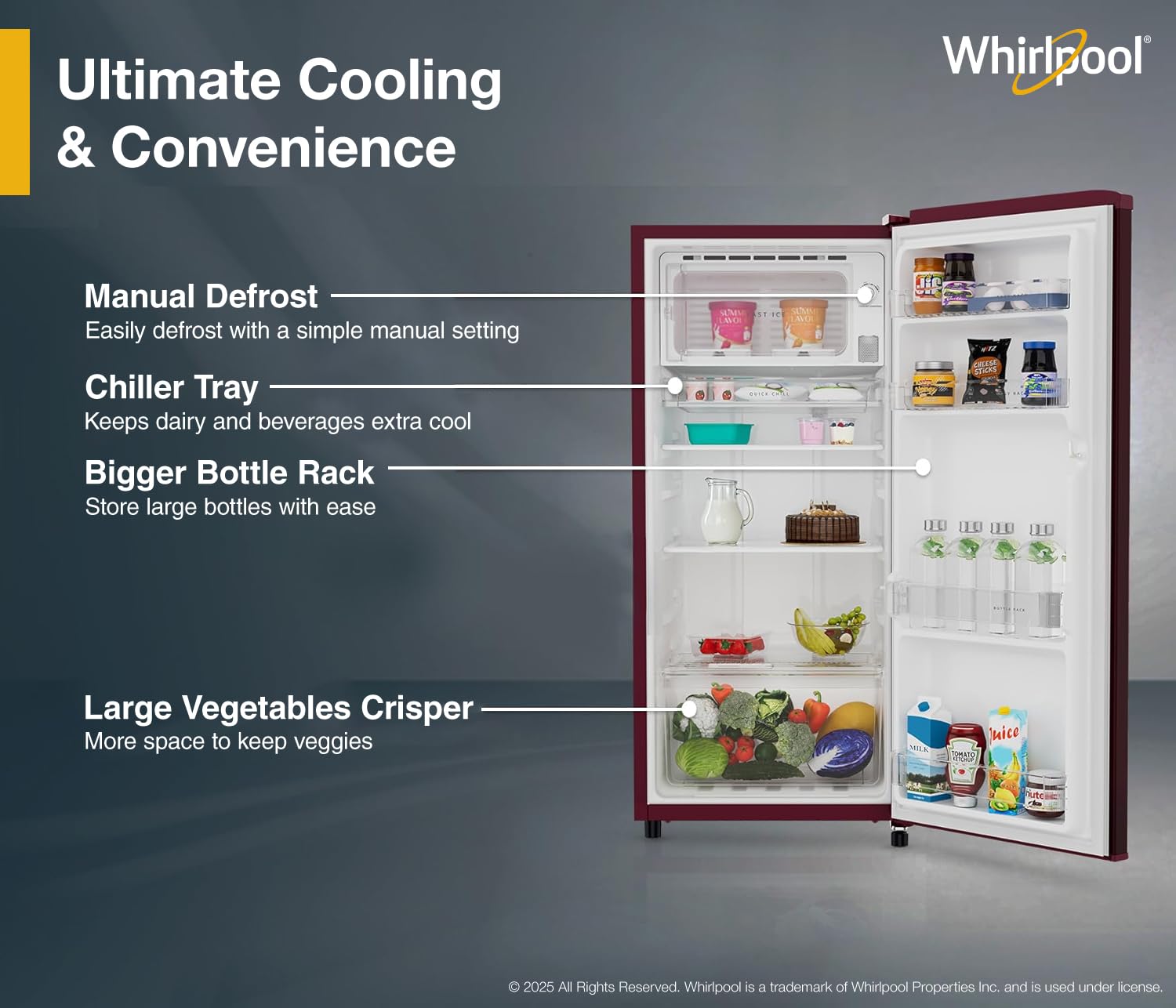 Whirlpool 184 L 2 Star Direct-Cool Single Door Refrigerator (205 WDE CLS 2S SHERRY WINE-Z, Red)