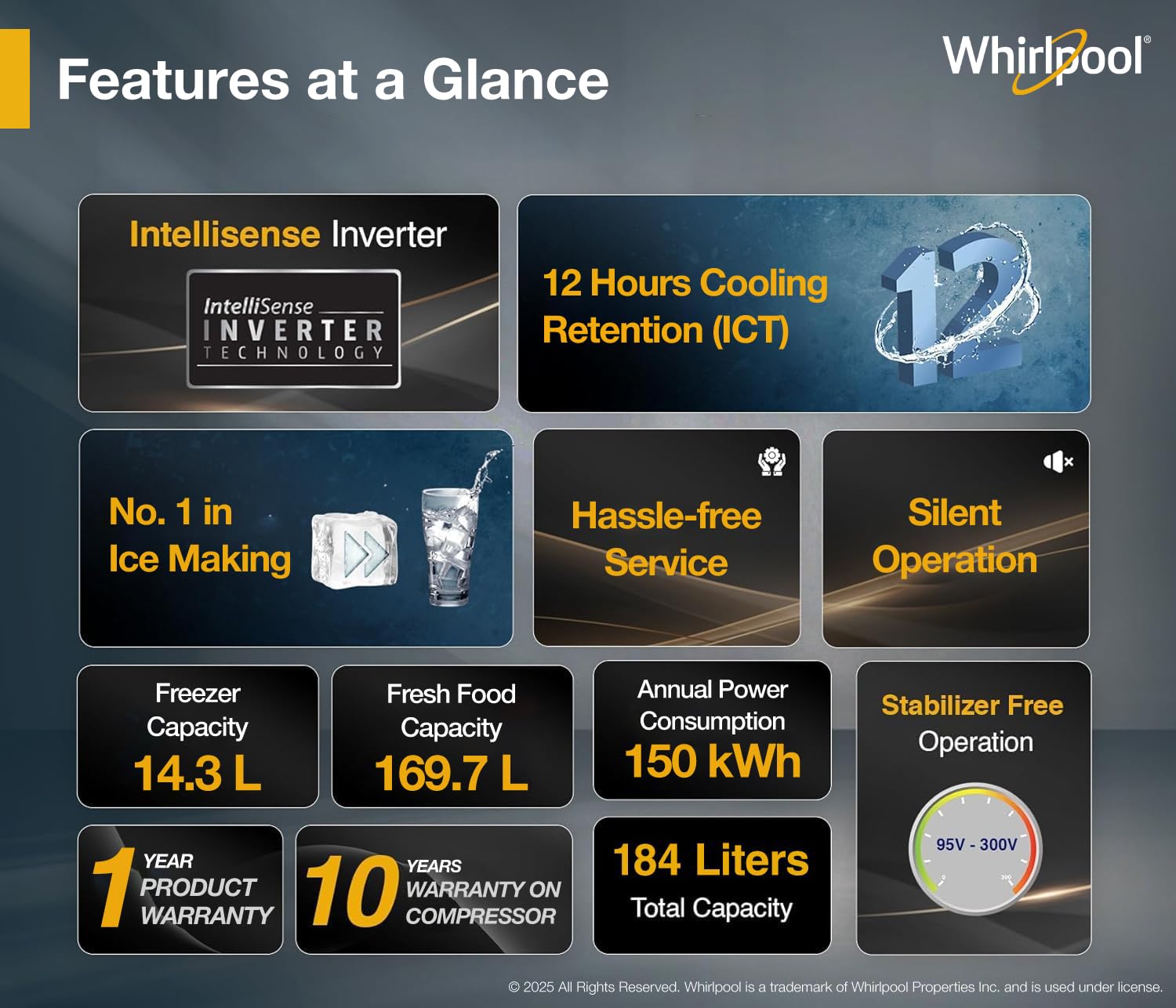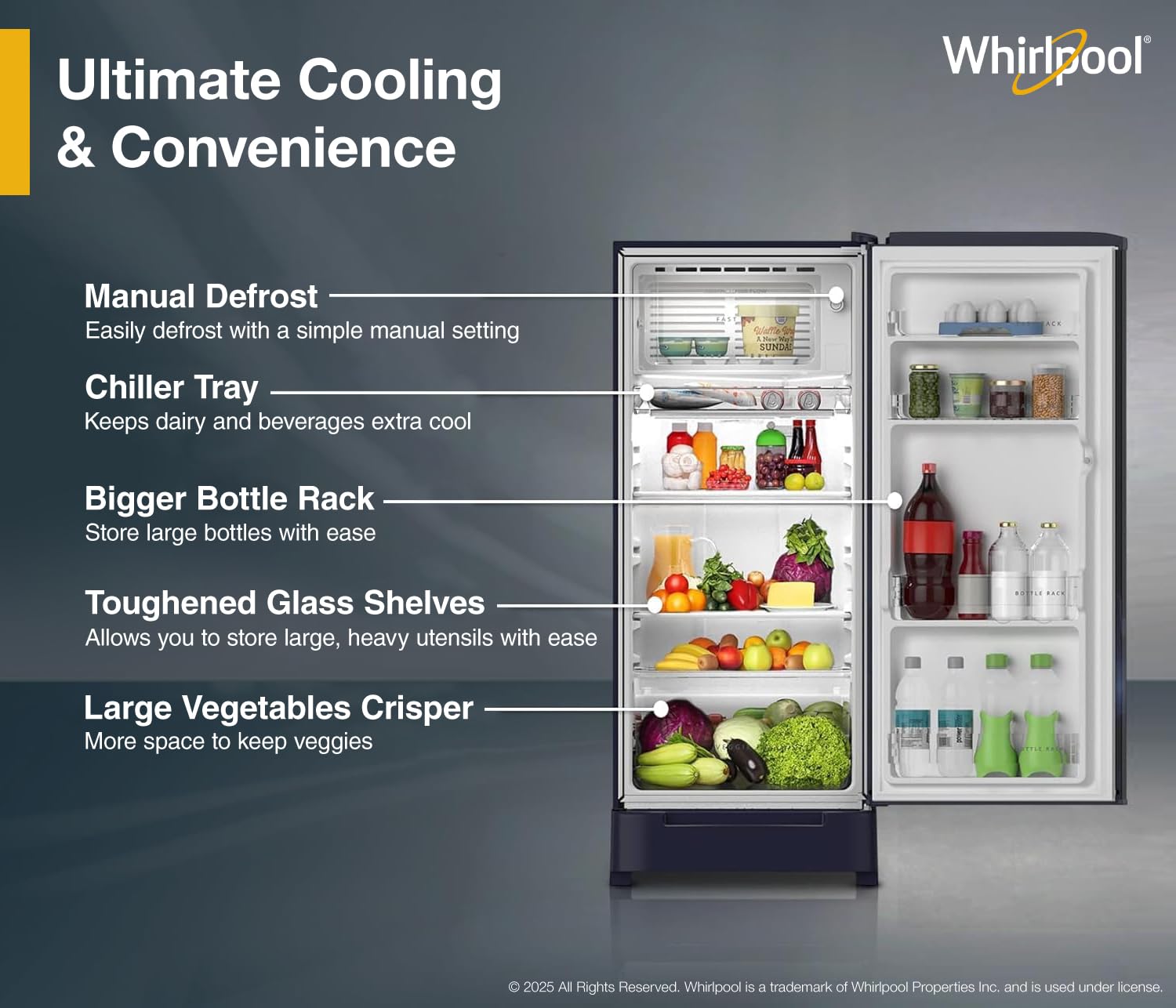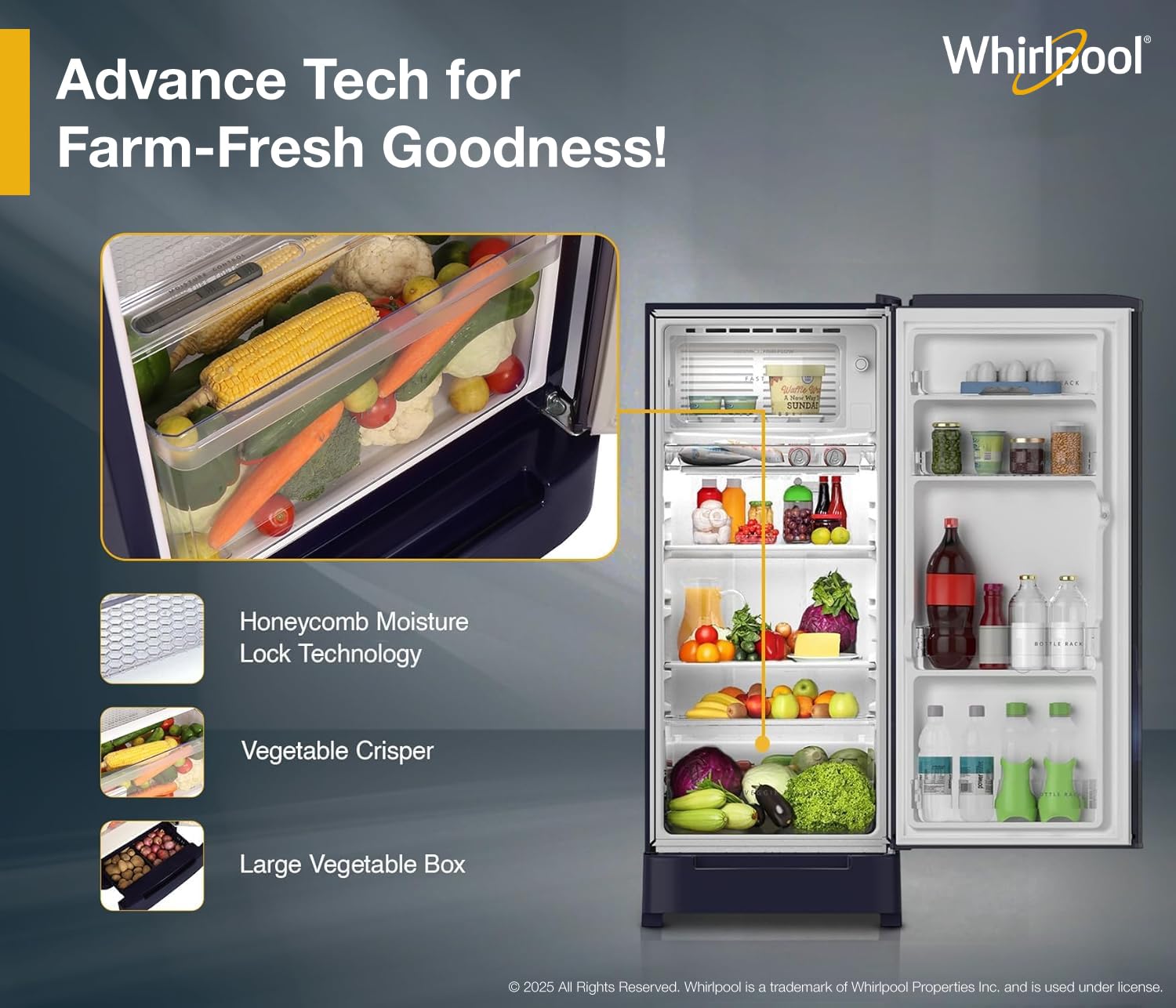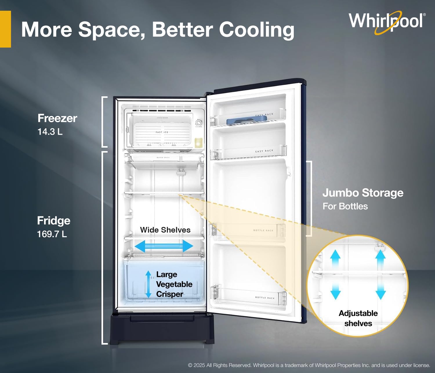 Whirlpool 184 L 5 Star Direct-Cool Single Door Refrigerator with Intellisense Inverter Compressor (205 WDE ROY 5S INV SAPPHIRE SERENA -Z1)