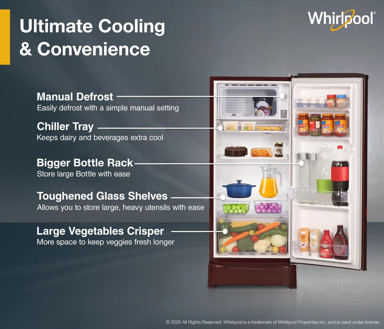 Whirlpool Refrigerators can stably operate even in high fluctuation of voltage (95V-300V) and do not require a separate stabilizer.