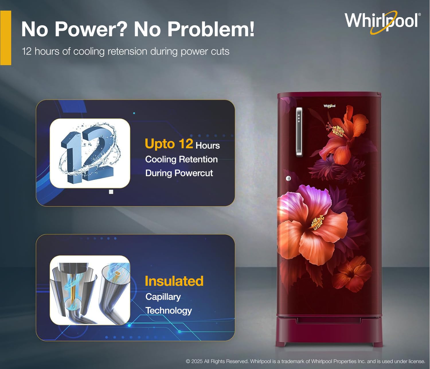 Insulated Capillary Technology, the capillary which carries the refrigerant from the compressor to the freezer is surrounded by super cold gas leading to benefits such better compressor efficiency, faster cooling and 9 Hours* cooling retention in the refrigerator.