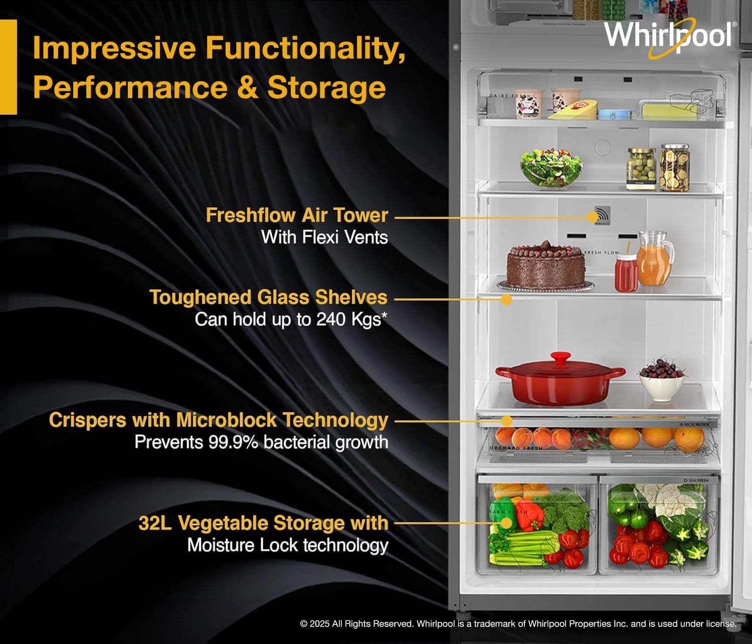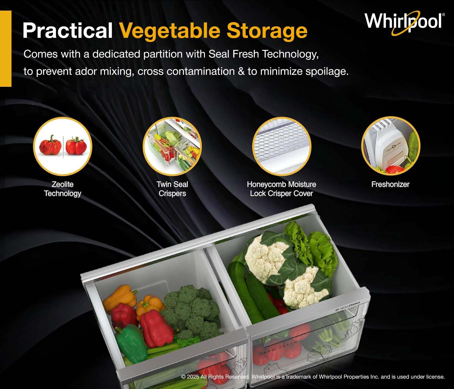 Brand Feature : 15 Days Of Garden Freshness, Microblock Technology, Freshonizer, Honeycomb Moisture, Freshflow Air Tower