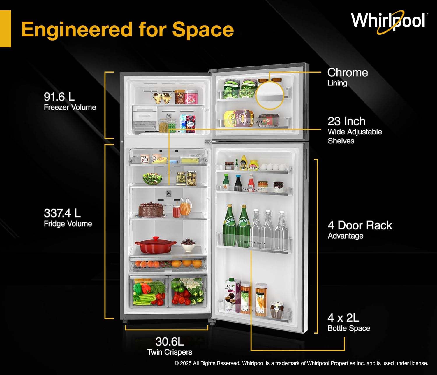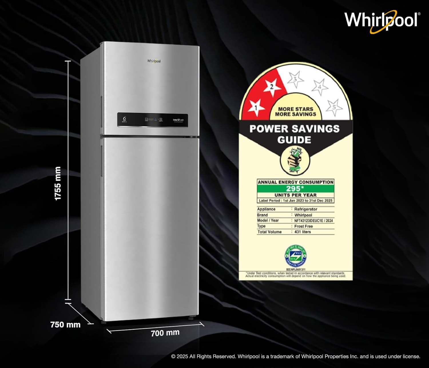 Capacity: 431 liters suitable for medium to large sized family