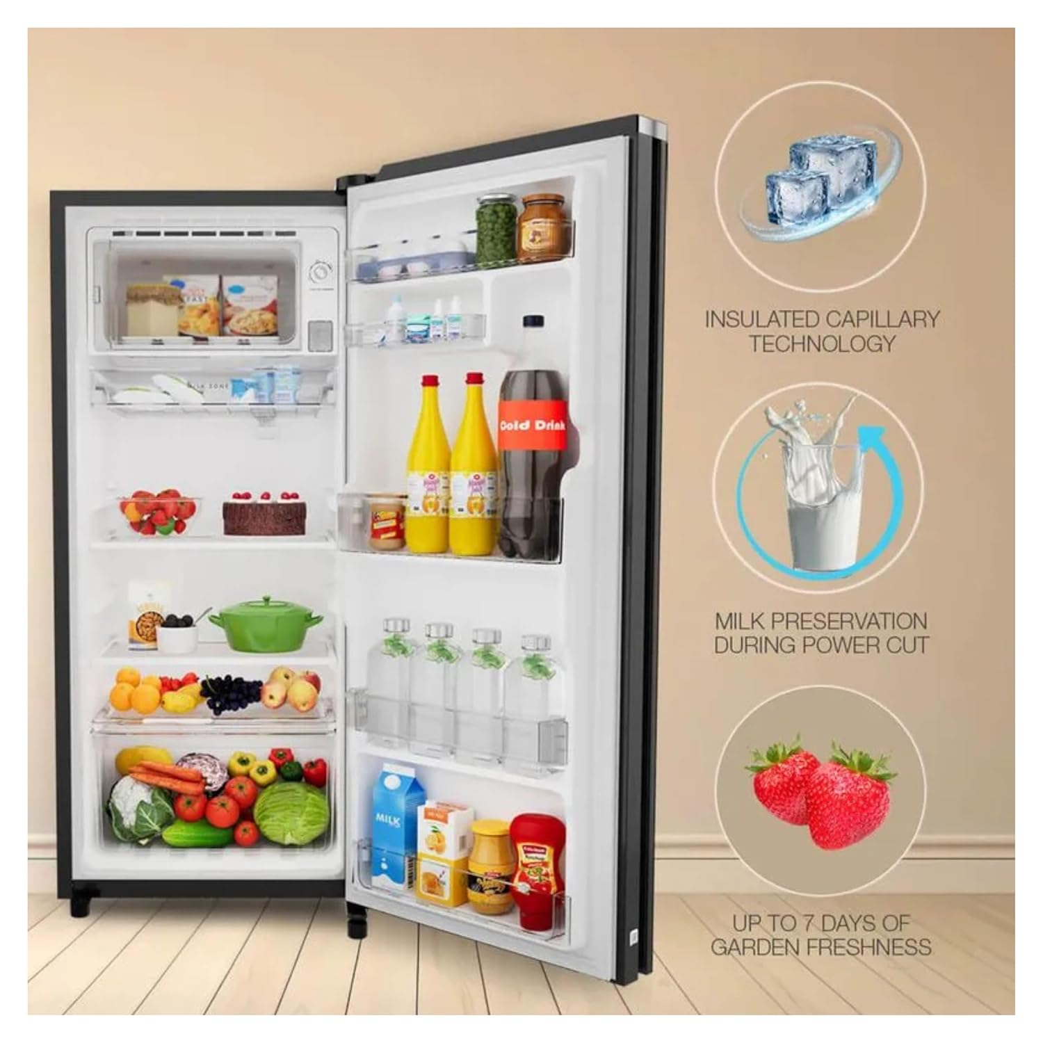 Inverter Technology: Advanced inverter compressor adapts cooling based on internal load, ensuring consistent cooling with minimal noise.