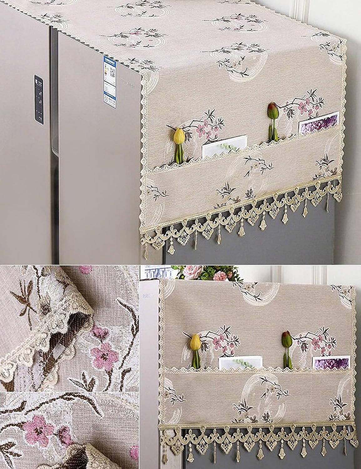 🧵 PROTECTIVE TOP COVER – Helps keep your fridge surface dust-free while adding a decorative touch to kitchen interiors with its printed fabric design.