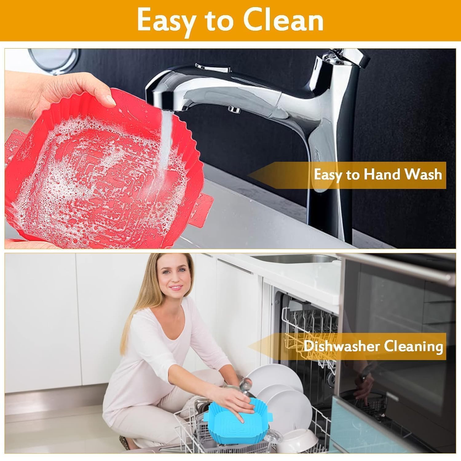 Multi-Purpose Use in Oven, Microwave & More: More than just air fryer accessories! These silicone liners are also oven-safe, microwave-safe, and freezer-safe, offering versatile cooking options. Use them for baking cakes, reheating leftovers, roasting veggies, or even serving snacks. Ideal for busy kitchens, home cooks, or anyone looking to simplify their meal prep.