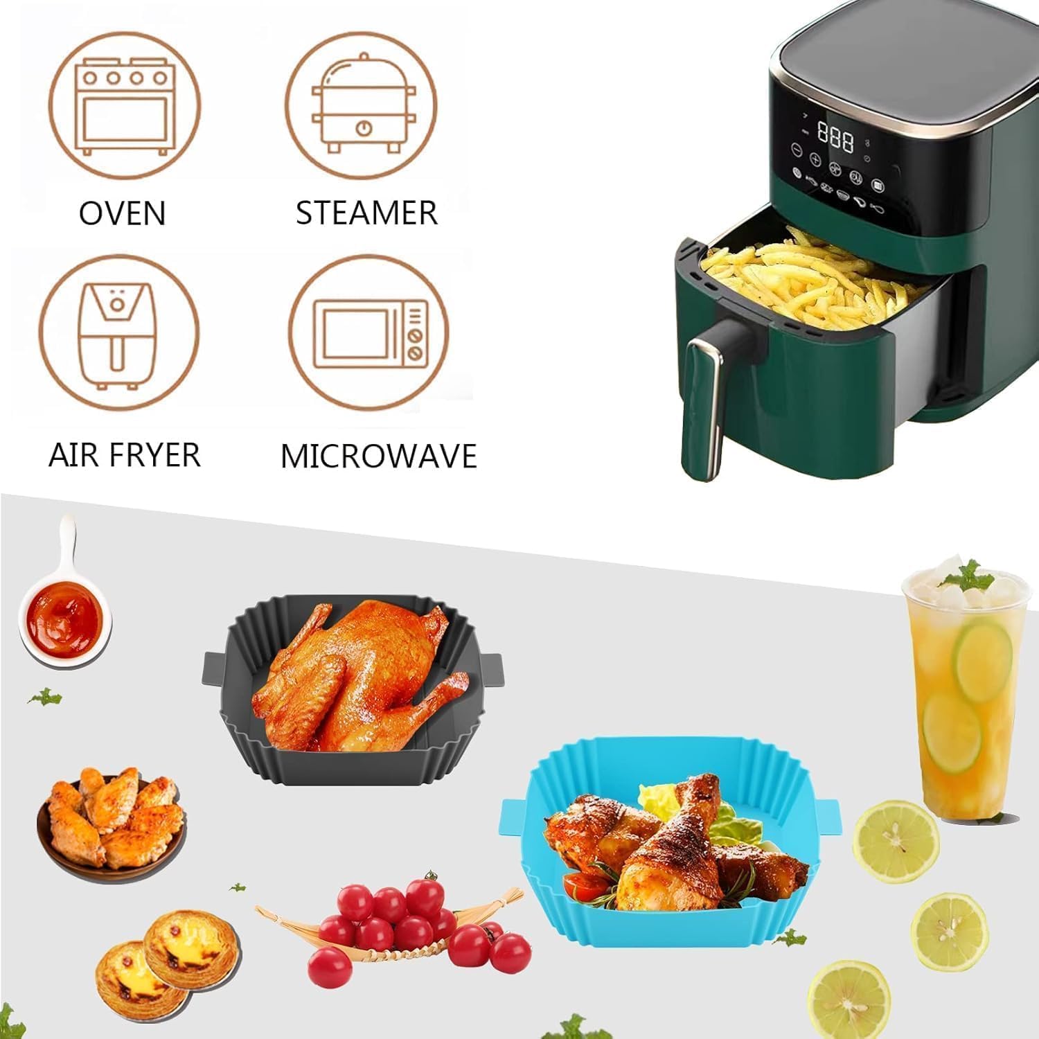 Xacton Air Fryer Silicone Liners – 8 Inch Square Reusable Non-Stick Basket with Handles I Heat Resistant Baking Tray for Air Fryer, Oven & Microwave I Multicolour I Easy to Clean – Pack of 2 Pcs