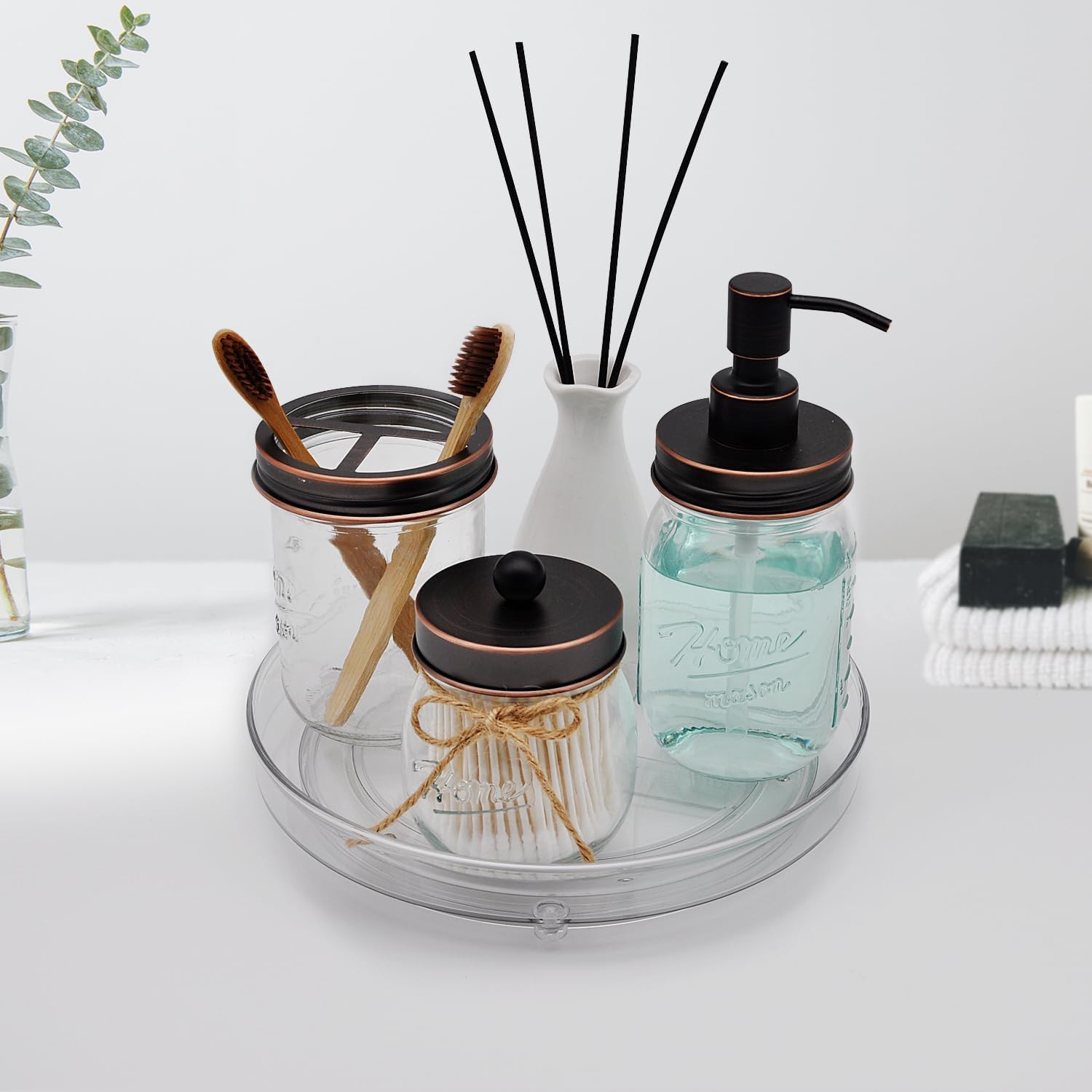 1 review for Xacton Clear Lazy Susan Turntable Organiser Tray | Transparent Acrylic Round Organisers | 360° Rotating Kitchen & Fridge, Bathroom & Makeup Storage Rack for Spices, Sauces, Jars & Bottles – 10 Inch