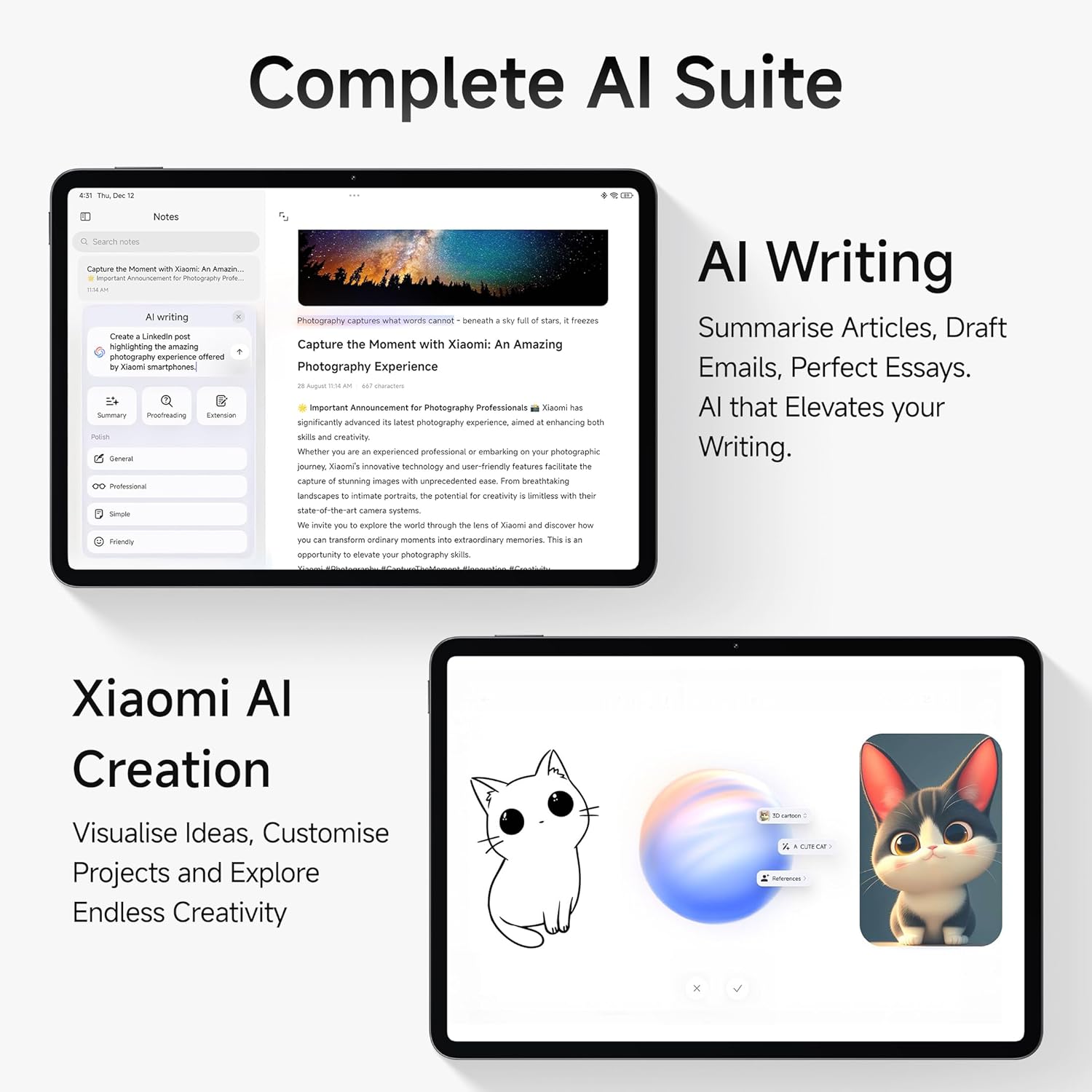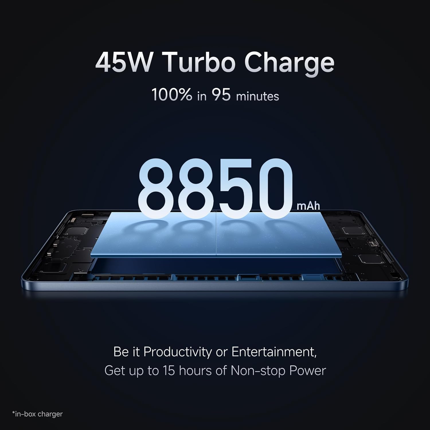 Most Advanved Snapdragon 7 Series Processor – Power through tasks with the Snapdragon 7+ Gen 3, offering upto 2x better performance for smoother multitasking and gaming. As the most advanced processor in the Snapdragon 7 series, it supports LPDDR5X memory and UFS 4.0 storage for lightning-fast data access.*as compared to previous gen xiaomi tablets