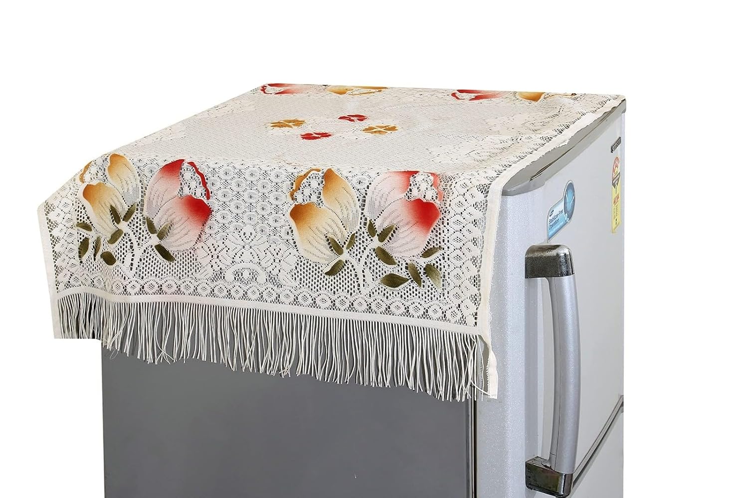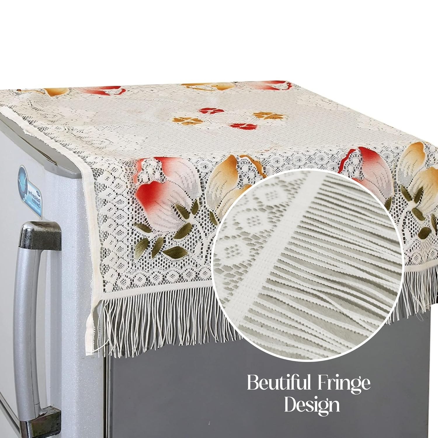 Yellow Weaves™ Floral Decorative Fridge Top Cover – (Off-White Color 37 X 24 Inches)