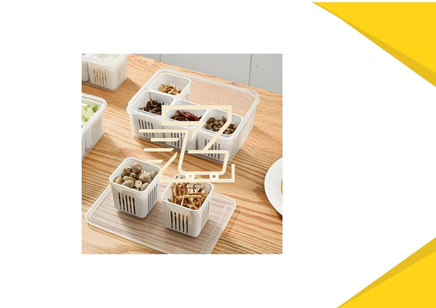 About this item: 🧩 Detachable Compartments: 6 separate boxes let you store vegetables, fruits, snacks, or spices without mixing. 💧 Drain & Store Design: Inner basket allows easy washing, draining, and storing—keeping your food hygienic and fresh. 🍎 Freshness Lock Lid: Airtight lid helps retain freshness and prevents odor mixing inside your fridge. 🏠 Space-Saving: Compact, stackable design fits easily in refrigerators and kitchen shelves. ✨ Multi-Purpose Use: Ideal for storing cut veggies, fruits, dry fruits, namkeen, cheese cubes, or meal-prep ingredients.
