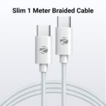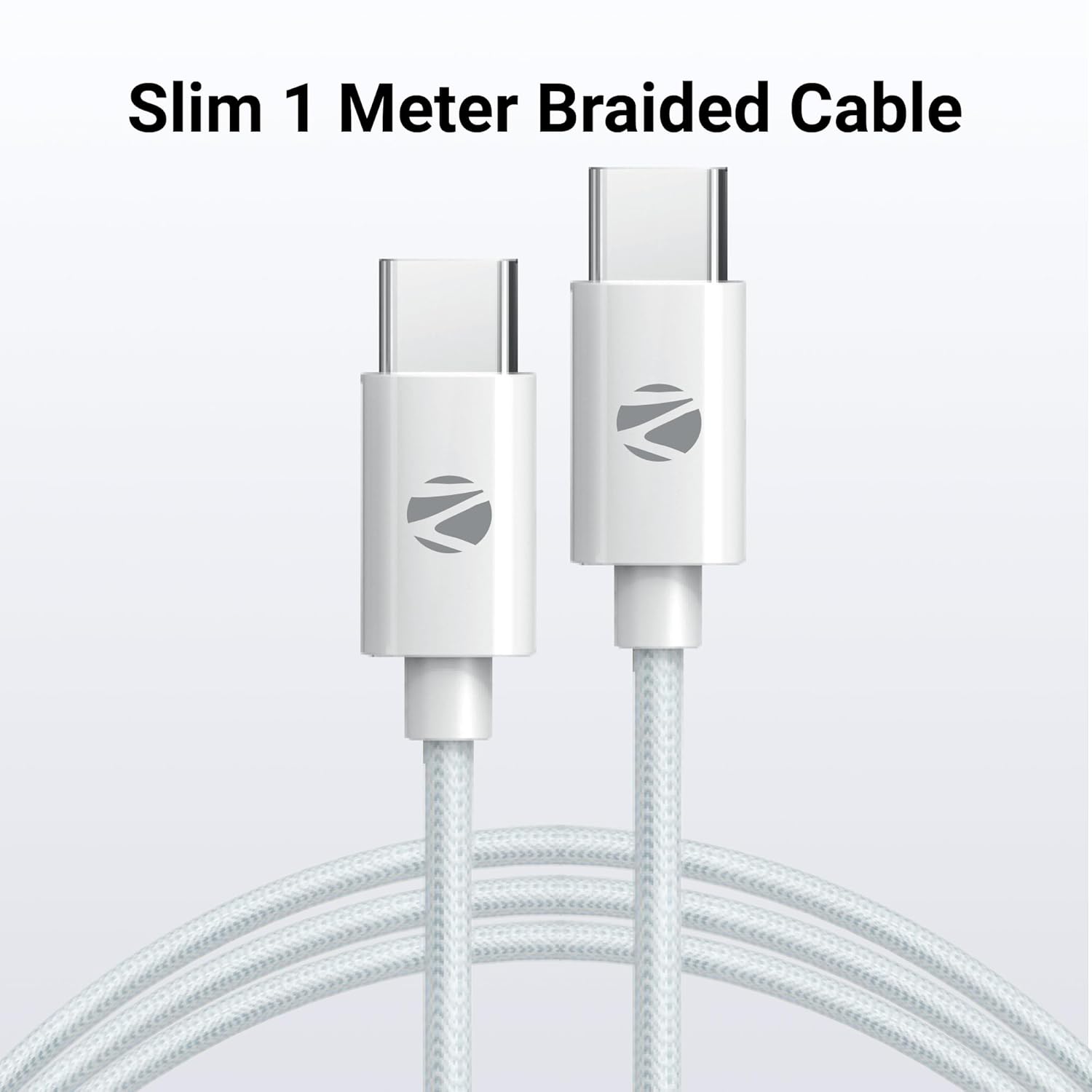ZEBRONICS Type C to Type C Strong Braided Cable, 60W PD Fast Charging, for iPhone 16 Series, 15 Series, iPad, MacBook, Samsung, Other Android Devices, Data Sync, 1 Meter (ZEB-TT60+) White