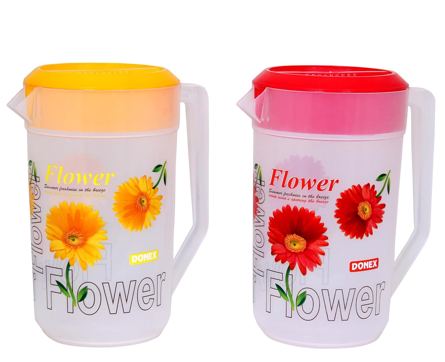 Wide mouthed pitcher with lid/cover, very easy to clean! Light weight. Large, comfortable and strong handle makes lifting and pouring easy.